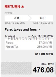 This what I find out should you like to fly to Perth, Australia. The return ticket cost only RM476.08. The return ticket is from 3th to 10 May 2017.